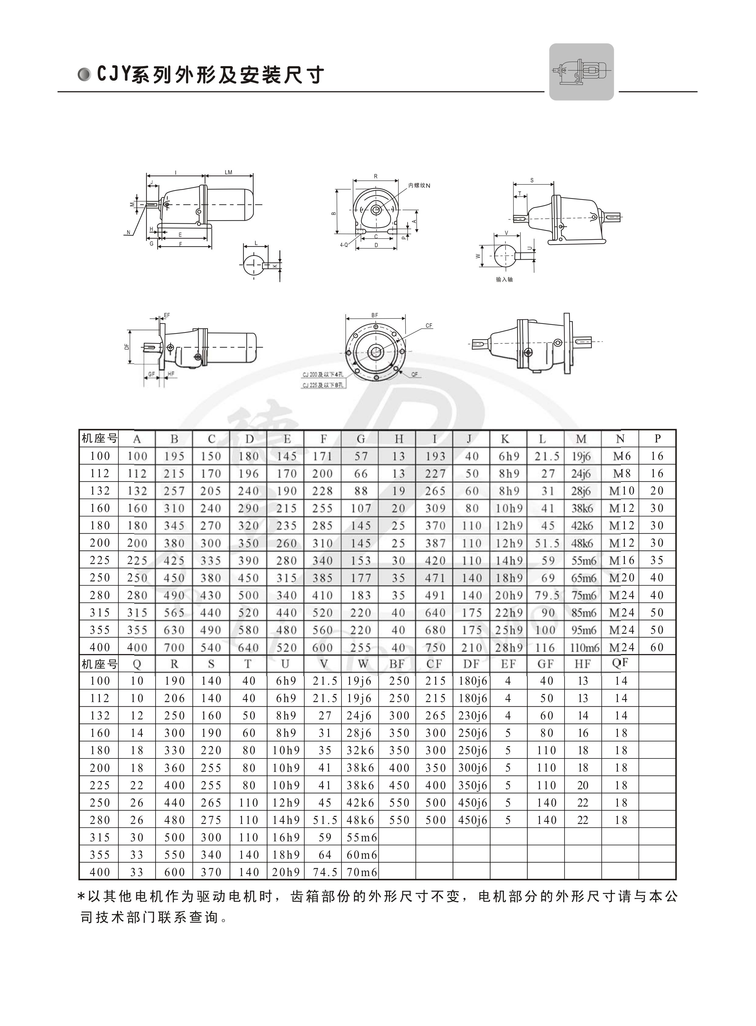 CJY系列斜齒輪減速電機簡介:CJY系列斜齒輪減速電機產品符合ISO、IEC國際標準,設計先進、結構緊湊、體積小、使用方便、噪聲小、效率高、使用可靠、等等特點。使用該產品同時客戶可以根據自